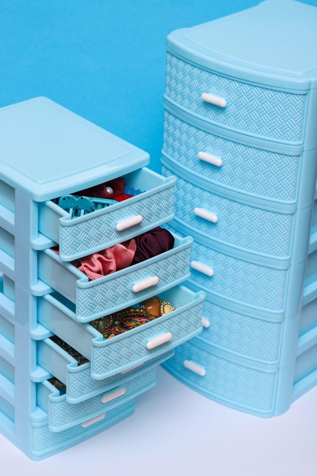 With its compact size, it fits effortlessly on any dressing table, study desk, or bedside shelf, making it super convenient for small spaces. The soft pastel tones β including transparent, beige, and sky blue drawers β add a fresh, playful vibe to your room dΓ©cor. Whether you go for the 3-drawer, 4-drawer, or 5-drawer version, you'll have just the right amount of storage to stay clutter-free in style.